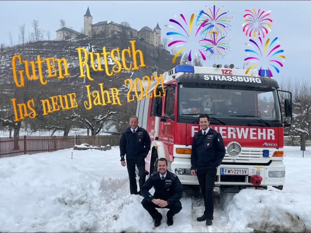 Die Kameraden der Feuerwehr Strassburg wünschen der Bevölkerung einen guten Rutsch ins neue Jahr! Das alte Jahr ist bald futsch, drum wünschen wir Dir einen guten Rutsch. Glück soll uns das neue Jahr gestalten und wir bleiben hoffentlich die alten. Alles Gute für das Jahr 2022 und bleiben Sie Gesund!