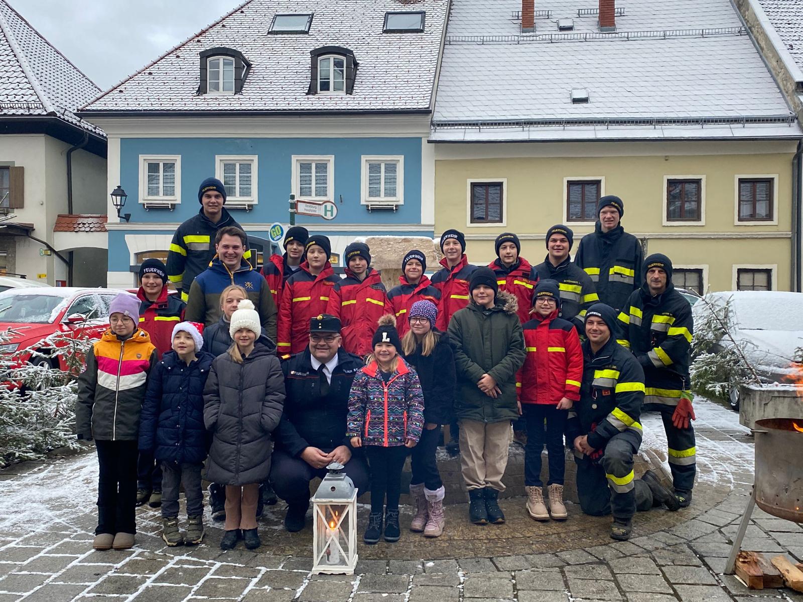 In der besonderen Atmosphäre der frühen Morgenstunden des 24. Dezembers begleiteten wir das Licht des Friedens zur Roratefeier in die Stadtpfarrkirche. Anschließend teilten wir das Friedenslicht mit der Bevölkerung am Hauptplatz – bei warmen Getränken und gemütlichen Stunden.