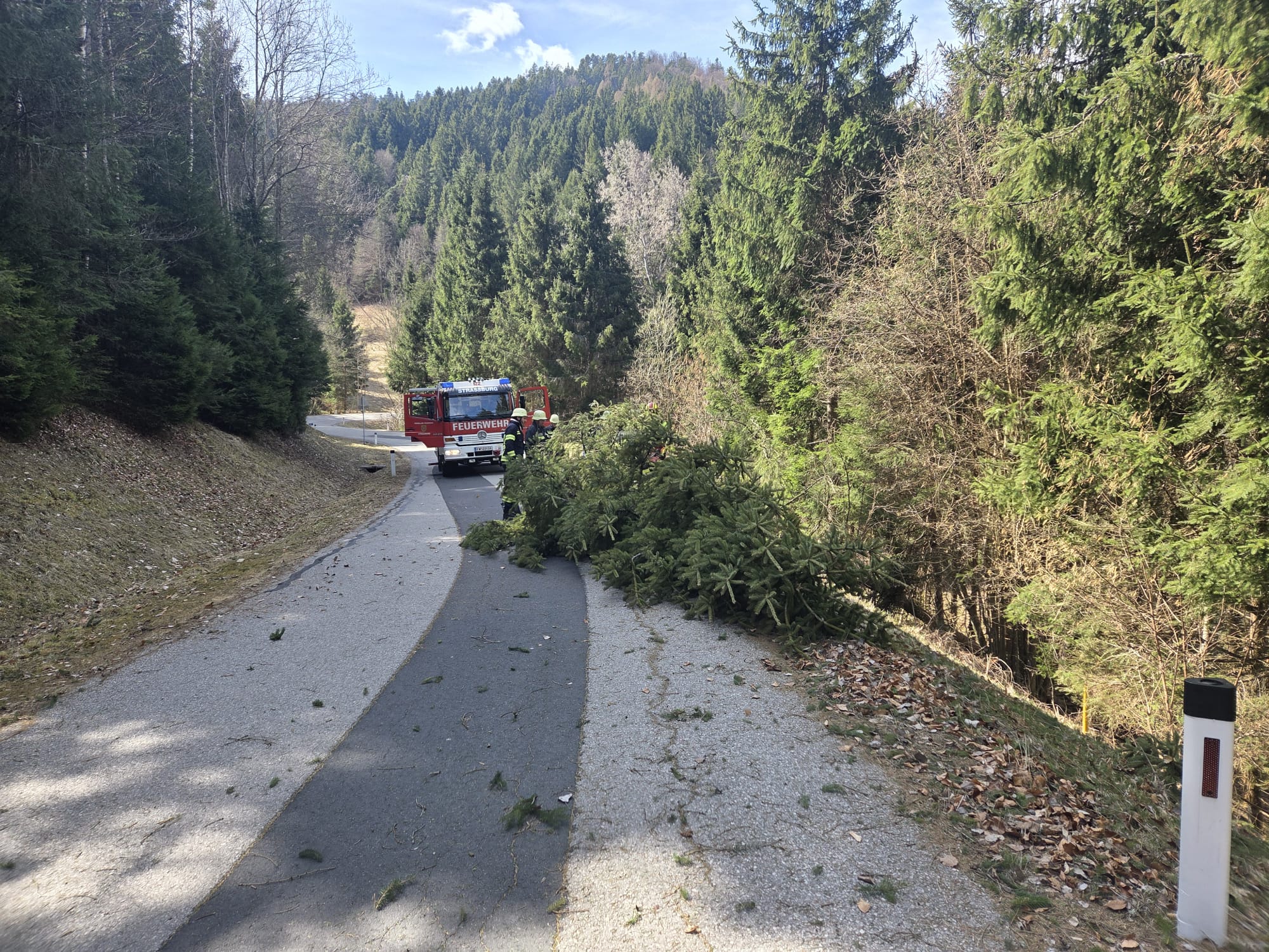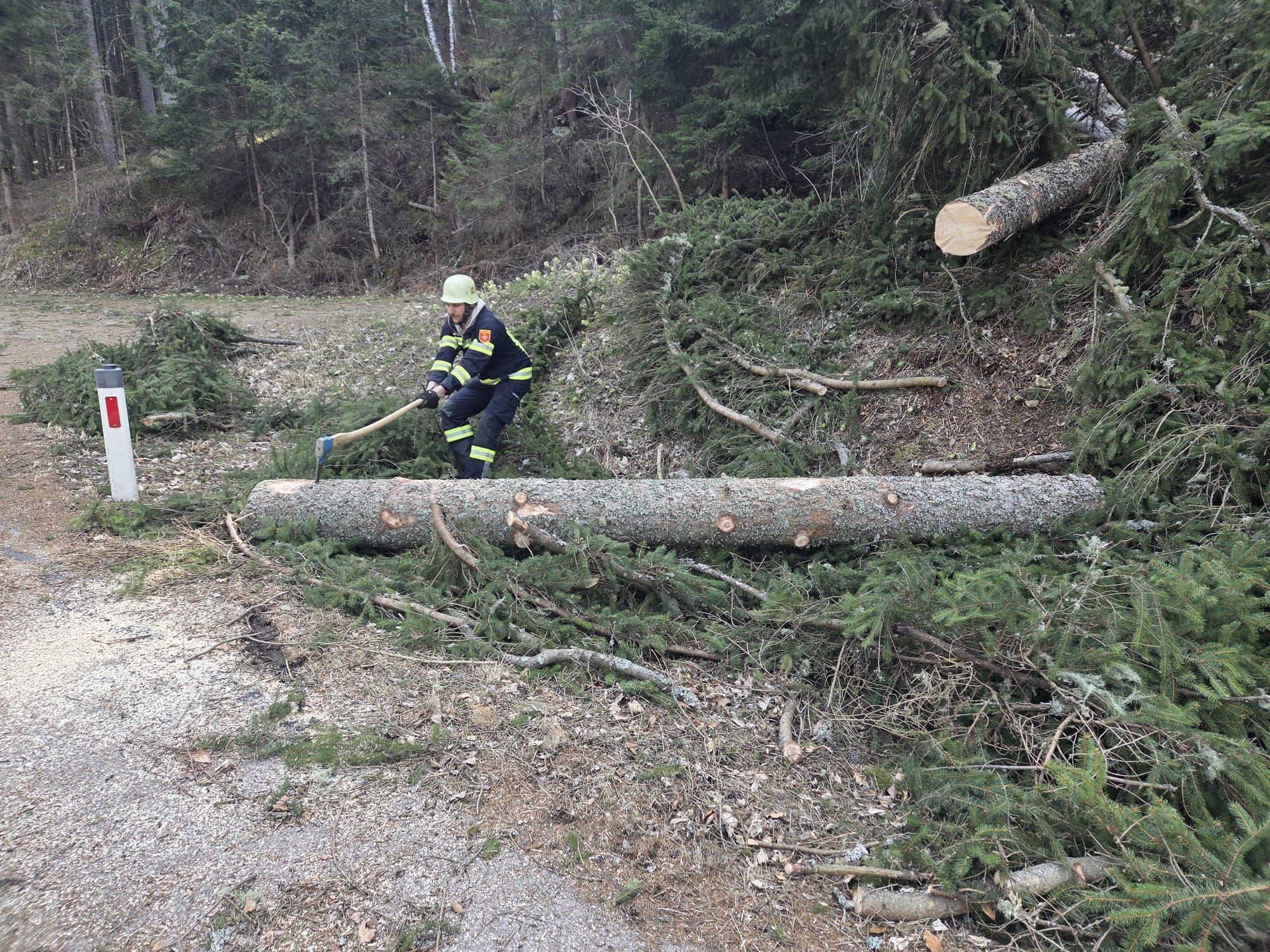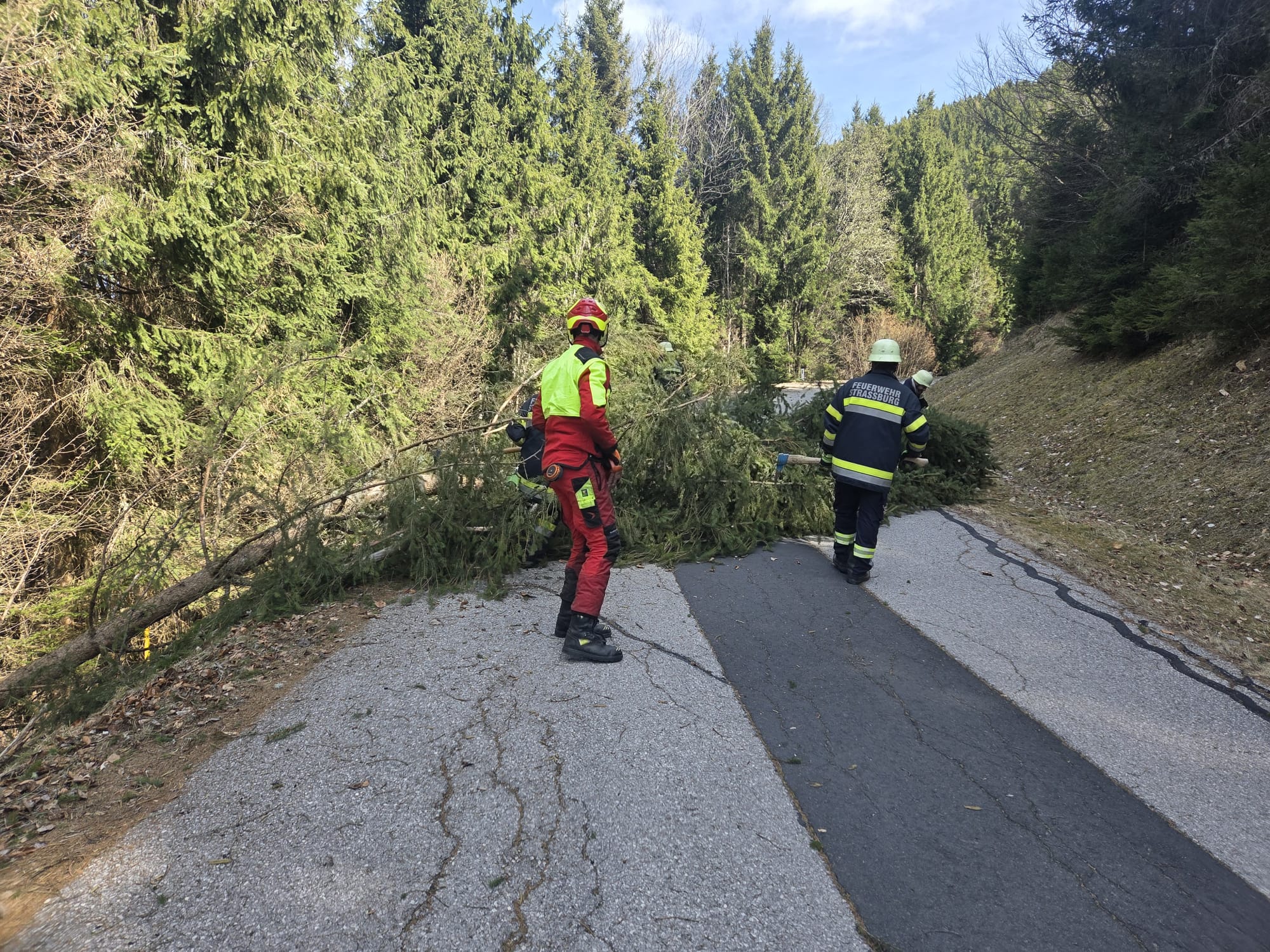 Am Freitag, dem 27.03.2026 um 12:25 Uhr wurde die Feuerwehr Strassburg zu einem technischen Einsatz alarmiert. Die Einsatzmeldung lautete: T UNWETTER 1, Baum auf Fahrbahn auf der Gunzenberg Straße.
